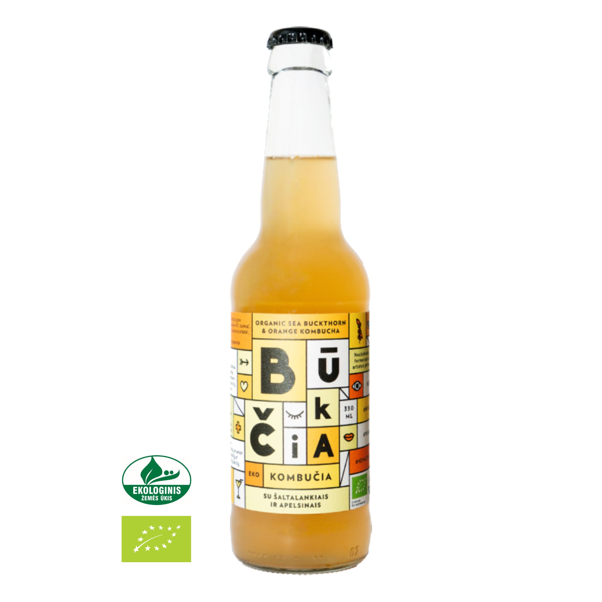 Šaltalankių ir apelsinų viena populiariausių mūsų smagiai spraginėjanti “Būkčia” kombučia!